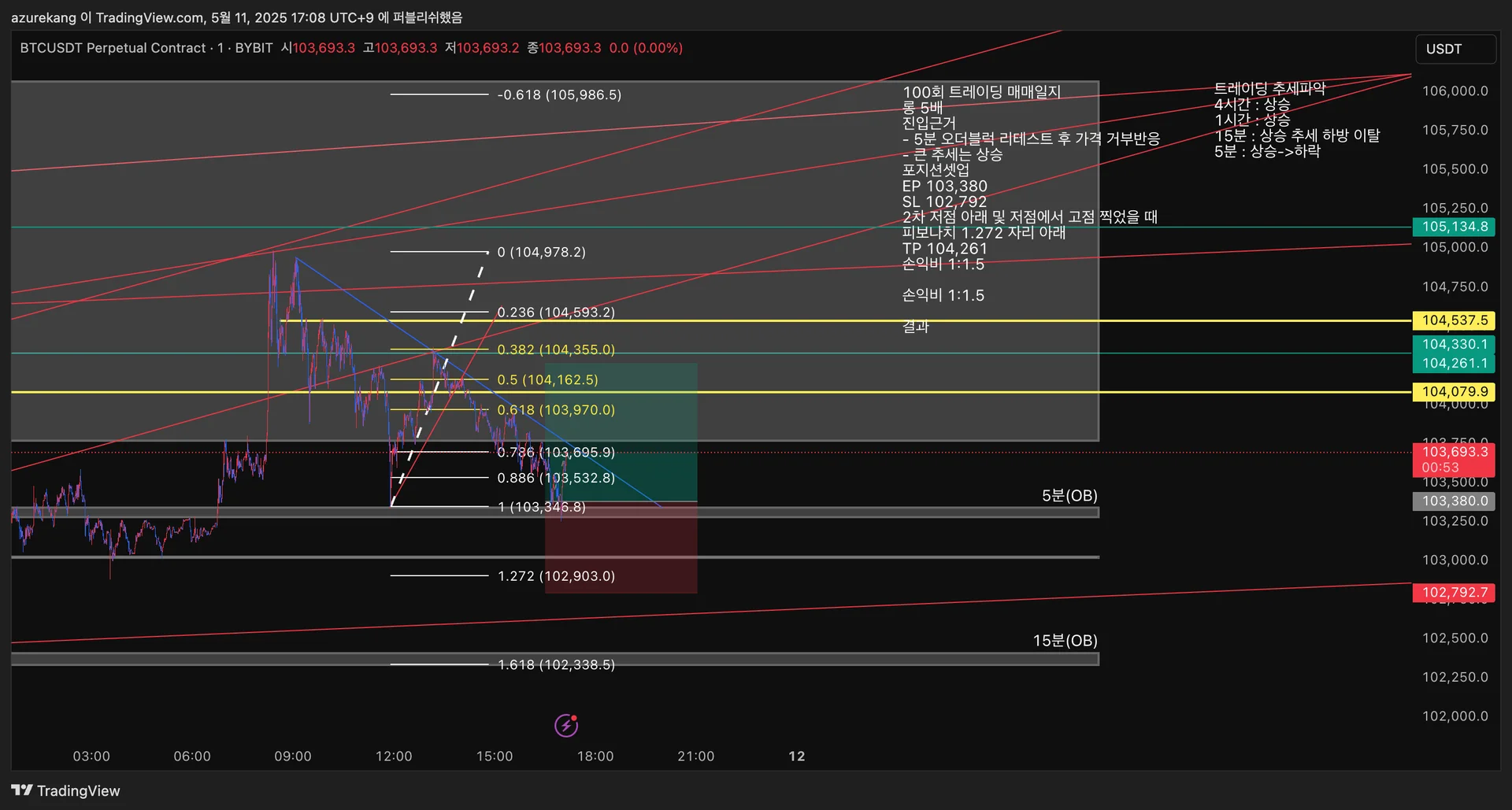 100회 트레이딩 매매일지 (16/100) 롱 5배