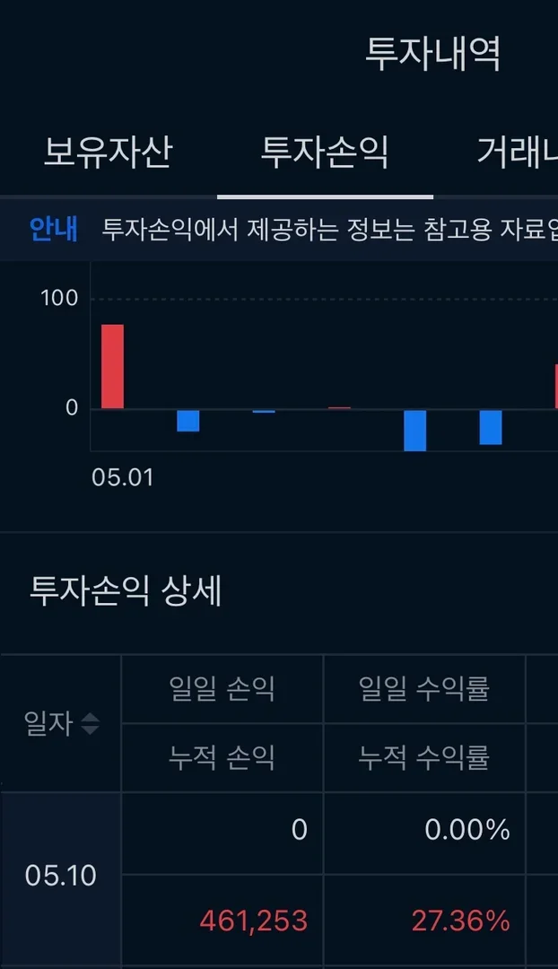 위에 표는 비트코인으로 모의투자 연습이고, 아래는 이더리움 업비트 실 수익 인증입니다. 아직 미흡해서 남들처럼 제대로 설명 된 인증이 어렵네요... 좀 더 공부하고 다시 올려보도록 하겠습니다!!