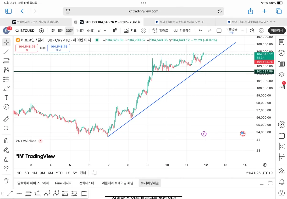 아직 잘 모르지만 이렇게 추세선을 그려 봤습니다