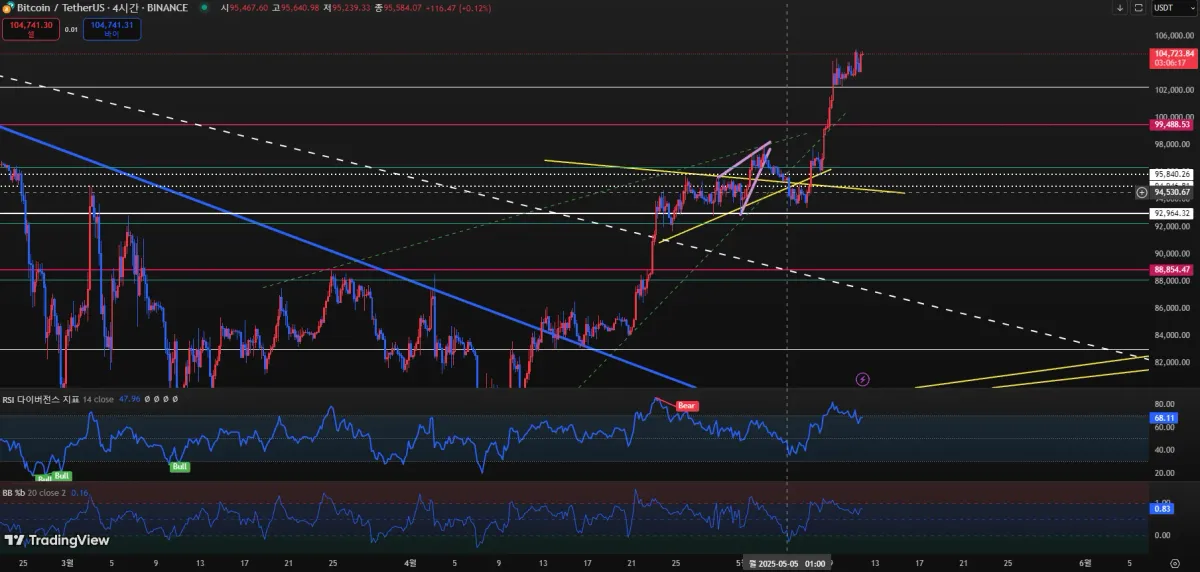 사실 5월 8일날에 진행된 매매기록입니다 이때 매매일지를 작성한다고 생각만하고 뒤늦게나마 올립니다. 이때 당시 나온 차트 패턴으로 인해 우하향이 발생될 것이라고 판단을 하고 기다렸습니다