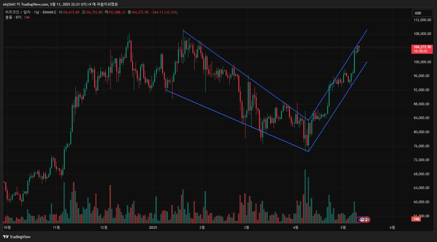 그래도 2025년 4월부터 비트코인이 급등하고 있는 추세가 포착되네요
