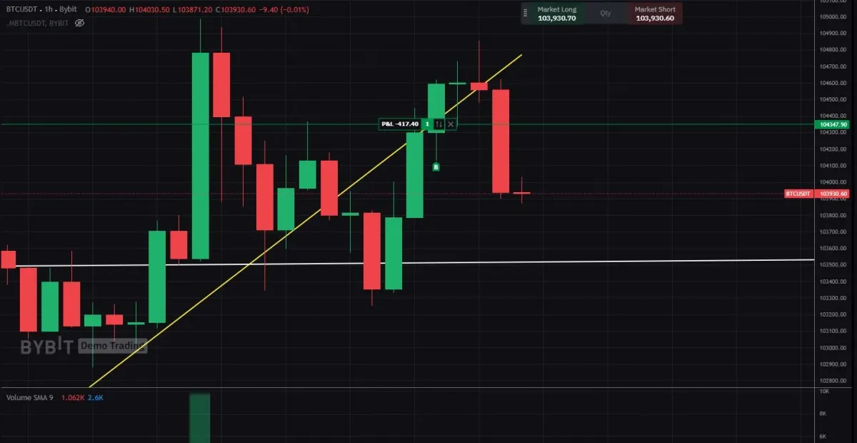 그래도 지지선 그어보고 그게 저항선이 된 지점이 있길래 그것과 추세선 으로 모의 트레이딩 한번 해봤어요.