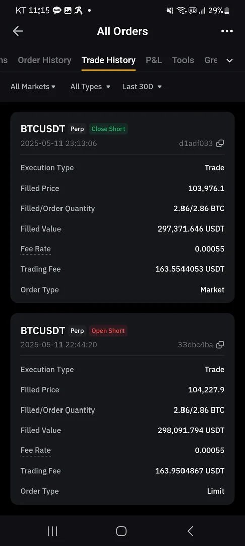 하락이 지속될것으로 판단하여 숏거래로 매매하였다. 그 흐름은 하락을 맞이하였고