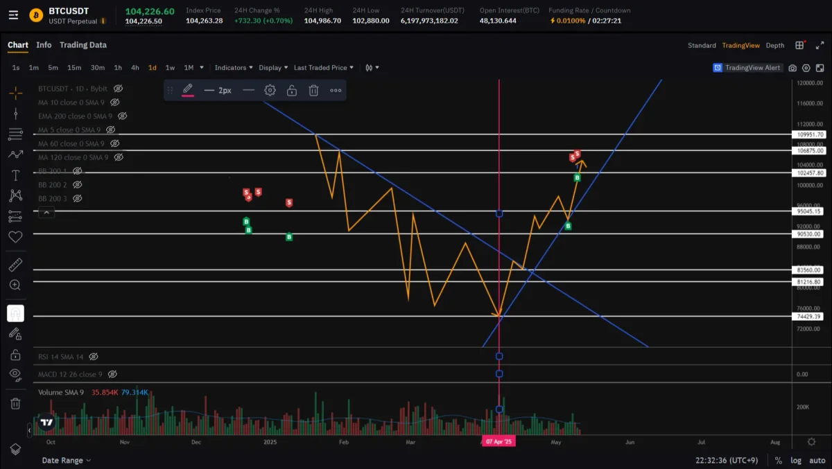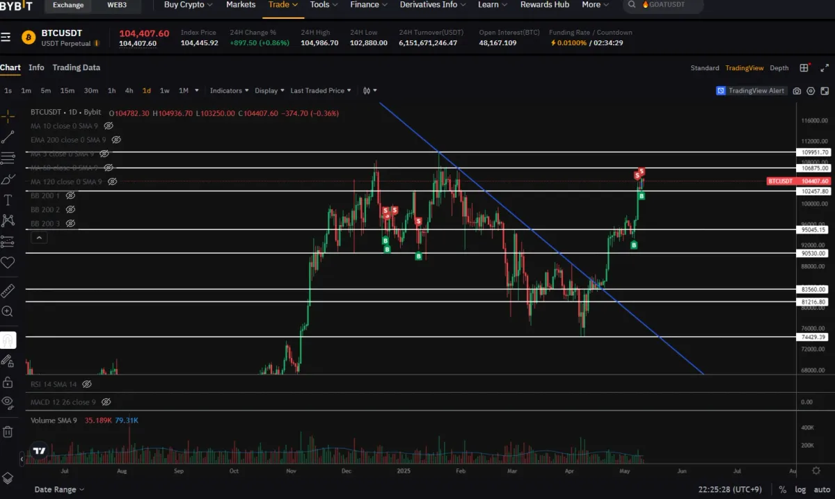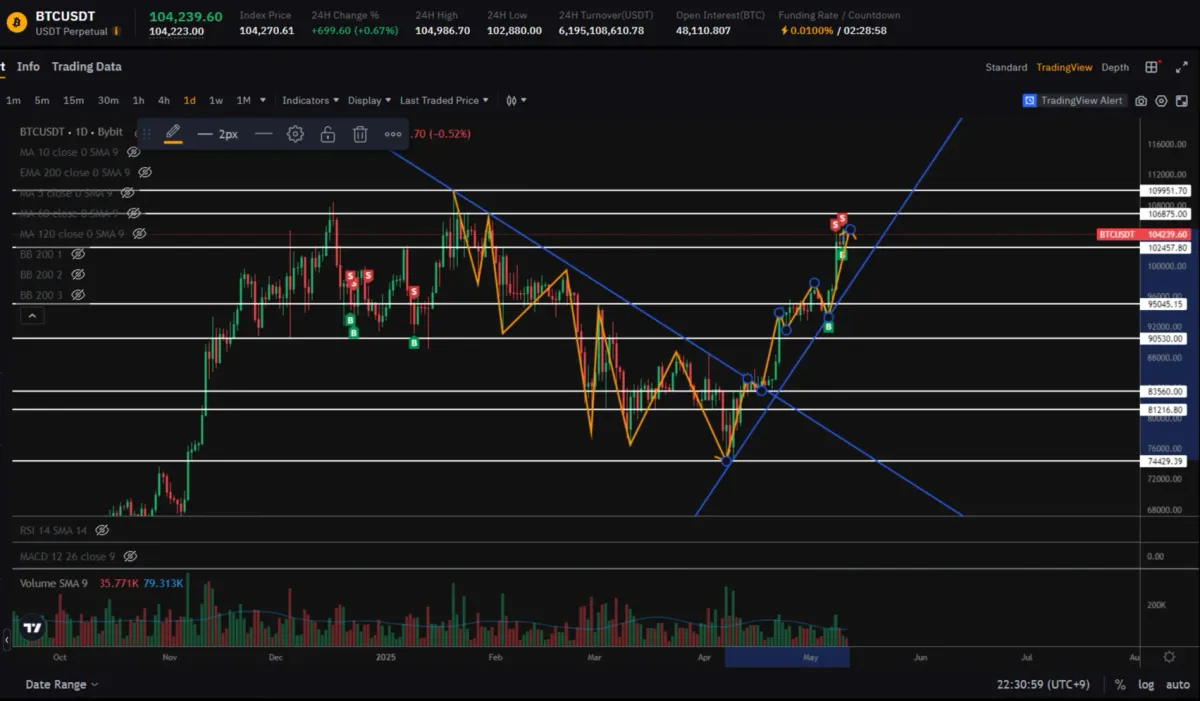 최근 강한 추세로 10만 달러를 재돌파했기 때문에 상승쪽에 더 무게를 두고 있습니다. (심리적으로 더 그렇게 생각됨)