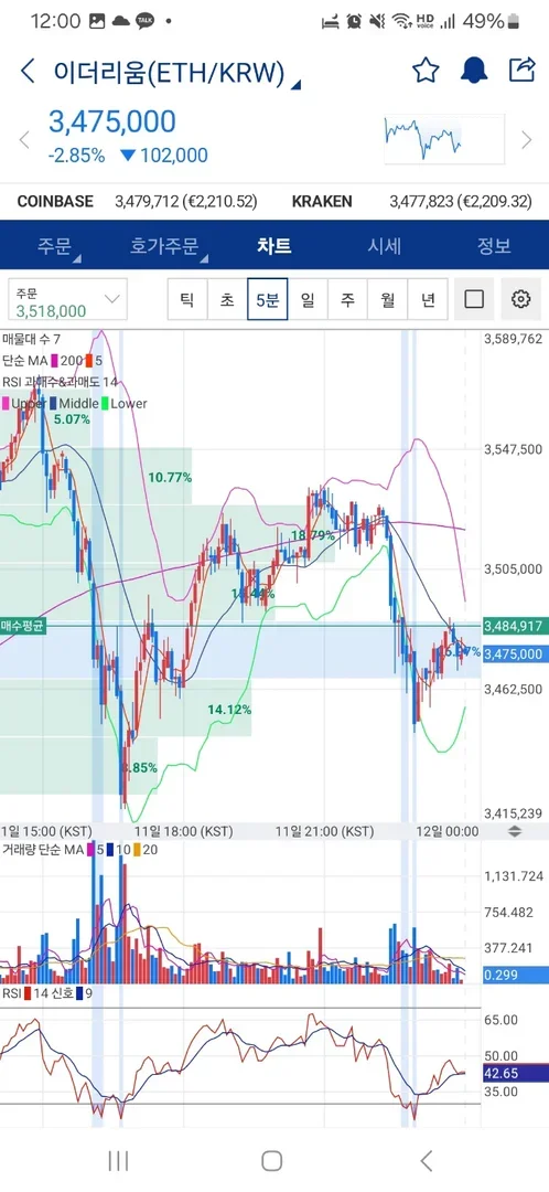 18시 5분의 진입했던 3485000은 이전에 돌파와 지지가 형성되었던 가격이기 때문에 매수하였고