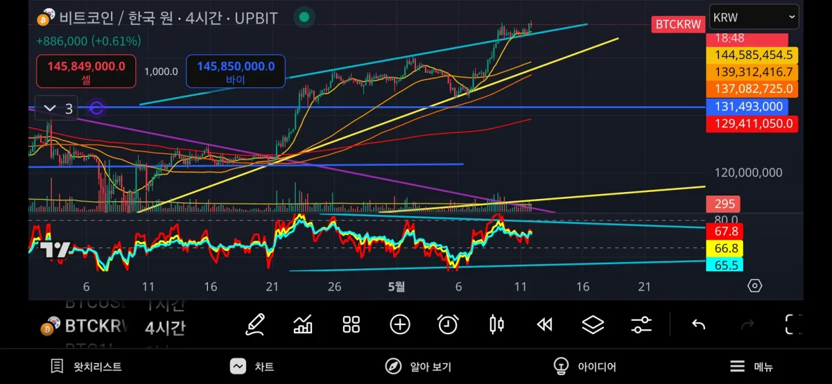 무조건 적인 매수가 아니라 씨드의 5분할매수로 지지선들에서 매수를 진행할 예정입니다.