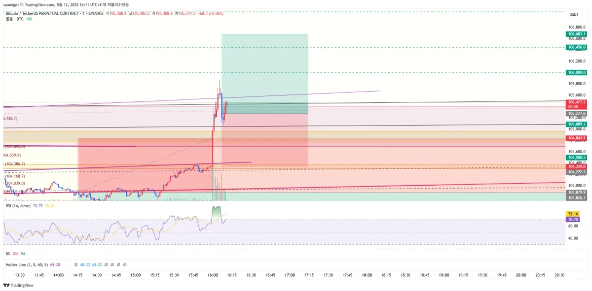 진입:105277.6/익절:106683.1/스탑:104339.0/손익비 1:1.5