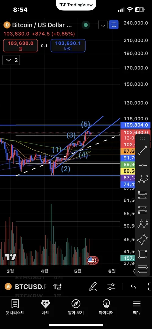 상승 후 전고점까지 돌파,저항 받을 거 같습니당