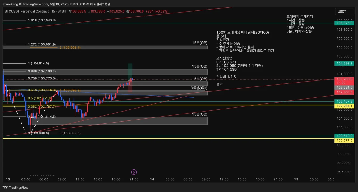 - SL 102,980(쌍바닥 1:1 아래, 손절거리 0.63%)
