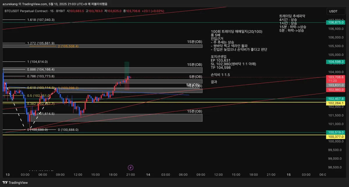 - SL 102,980(쌍바닥 1:1 아래, 손절거리 0.63%)