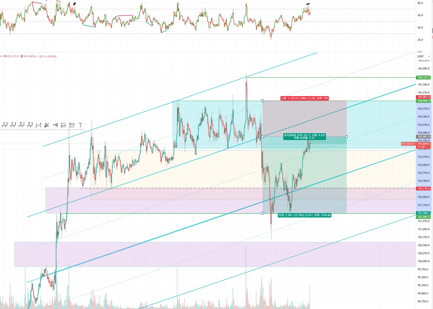 저는 헷징매매를 위주로 하고 있어서 특별한 손익비를 찾는 위치의 진입을 잘 고려하지 않습니다. 대략 그날 하루의 고점과 저점을 찾으려는 노력을 주로하면서 RSI와 지지와저항 및 피보나치등의 보조지표를 활용해서 당일의 고점과 저점을 찾으려고 합니다. 만약 아시아시장에서 저점이나 고점의 윤곽이 그려진다면 그자리부터 롱이나 숏을 잘개 잘라서 분할로 매수하는 편입니다. 지금까지 1~2번의 진입으로 매매를 할경우 대부분 손절과 익절을 너무나 못했기 때문에 이렇게 잘개 잘라서 분할로 매수하는 전략을 사용합니다. 물론 저 나름대로 분할의 %는 존재합니다. 그런이후 익절도 잘개 잘라서 분할로 하는 편입니다. 물론 수익이 생기는 시점부터 분할로 익절을 하기 때문에 이런 헷징매매를 합니다. 만약 제가 판단한 매매가 전적으로 잘못되어서 생각하고 있는 손실이 발생하면 바로 반대포지션을 90%정도 잡아서 일단 헷징을 하고 다음에 다시 전략을 구성하고 매매를 다시하는 편입니다. 제가 나름 이것으로 꽤 잘 수익을 내기도 했지만, 가장 큰 단점이 시세의 중요한 변곡점에서 반대포지션으로 크게 물리는 상황이 발행하는 경우가 많았고 이를 극복하고자 찾아보다가 우연히 투딩을 알게되고 여기서 본 강의를 저의 매매에 많이 추가하고 있습니다. 이전보다 좀더 분할매수하는 횟수와 %가 현격하게 줄었기 때문에 매우 감사드리고 있습니다. 저도 다른 트레이더처럼 정확한 가격에 진입해서 손절 아니면 익절가격까지 끌고사는 전략을 사용하고 싶은데 , 웬지모르지만 저의 종특이 어게 제일 어려운 부분이라서 극복하기 너무나 힘드네요. 물론 나중에는 저도 결국 이것과 가장 비슷한 형태로 진화하겠지만 아직까지는 극복하지 못하고 나름대로 혼자 매매하던 전략에 많은 수정을 가하고 있습니다. 앞으로도 좀더 더 많은 강의를 보고 저도 일반화된 매매방식을 좀더 잘 접목할수 있는 부분을 찾고 싶습니다. 감사합니다.