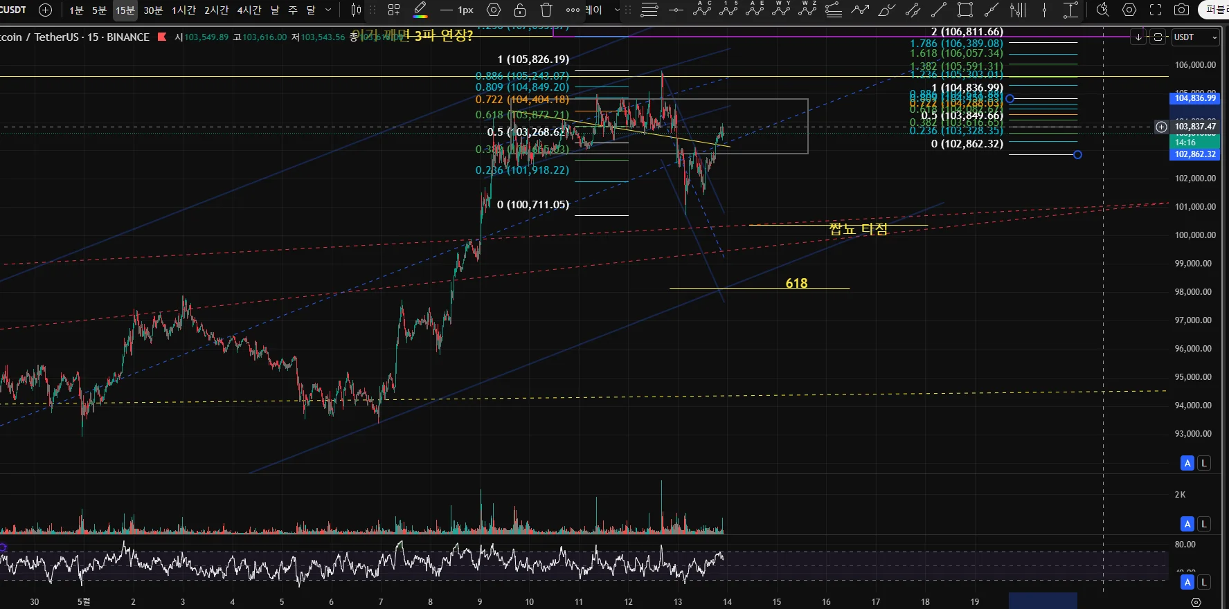 근거 2. 내려온 파동(a가정)의 618반등 구간, ict매물대 eq 50 구간, 올라오는 파동(b-a와 b-b) 의 1:1 익스텐션 자리. 이 세 가지가 모두 겹치는 타점.