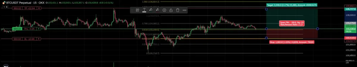 단기 15분봉 618 자리 롱진입 , 손익비 2:1로 TPS 설정