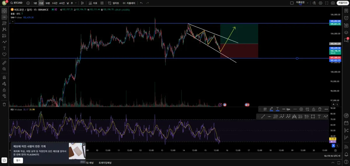 현재 단타로 15분봉 기준으로 들어가봤습니다.
