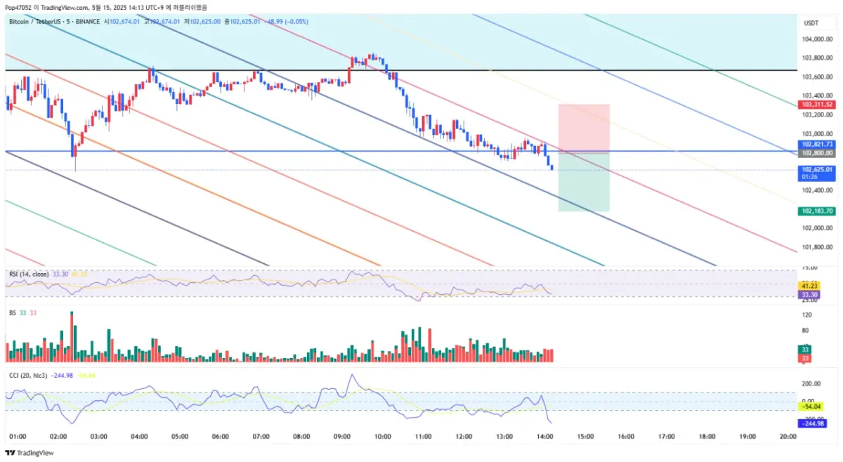 상승시 저항구간을 마지막 상승시 102K부분 파란선을 지지해줘야하는데
