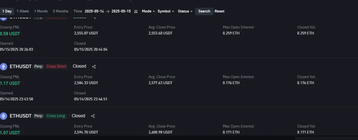 이더리움으로 진행했구요 증거금은73불 레버리지30배 분할매수5/1로 들어갔습니다