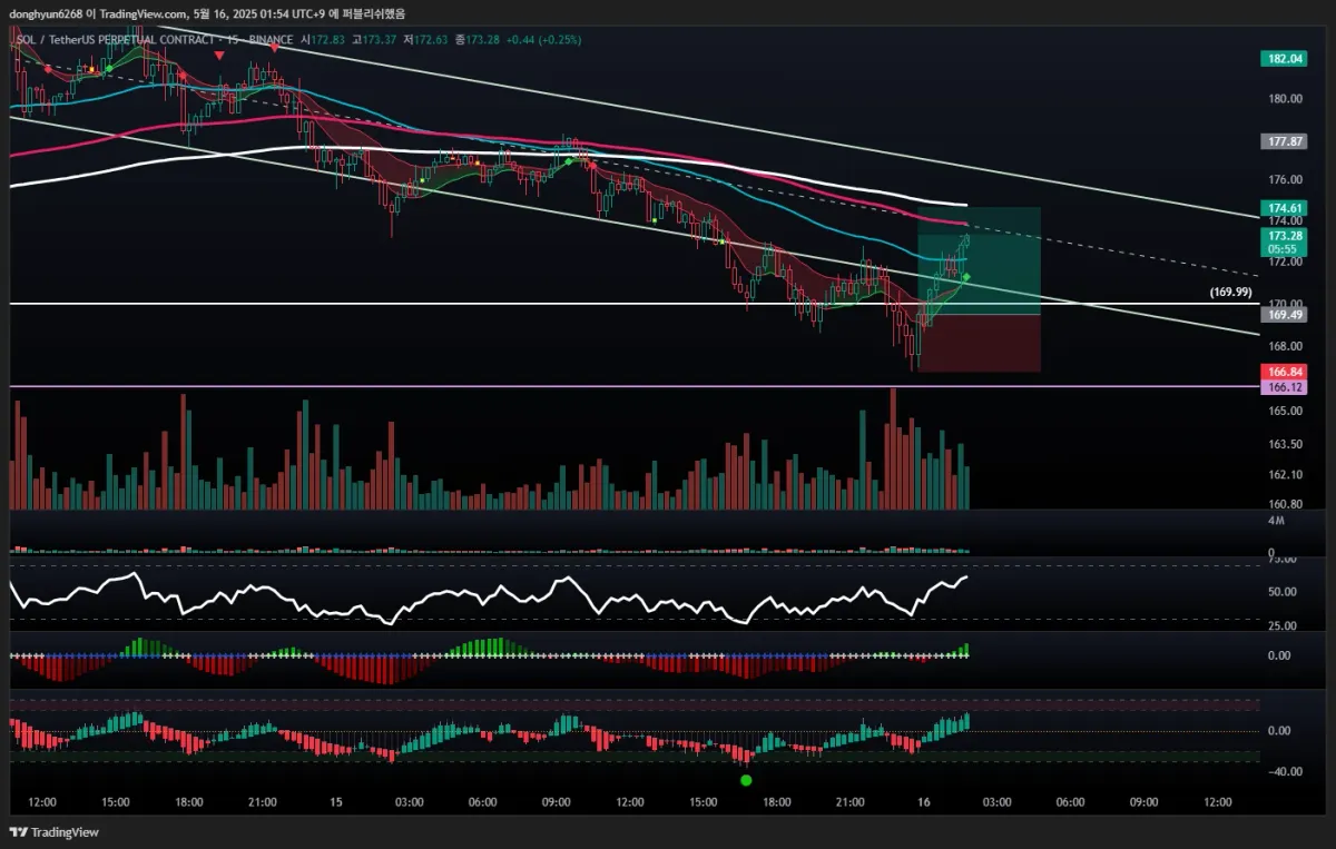 진입 근거 1시간봉에서 200이평 지지, 15분봉 다이버 중첩