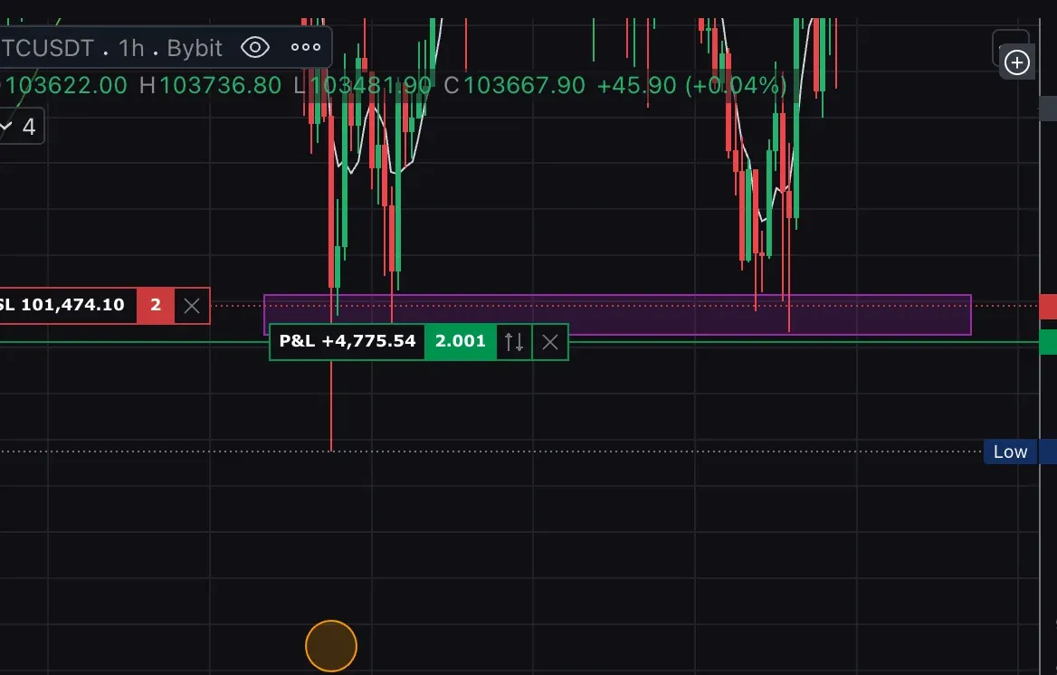 거래량 주고 밀어 올린 곳에서 BPR 생성하면 수렴형태의 조정을 주고 있는 중이라 판단 밑에서 받은 물량 분할 익절하고 스탑로스 걸고 홀딩 하는 중입니다.