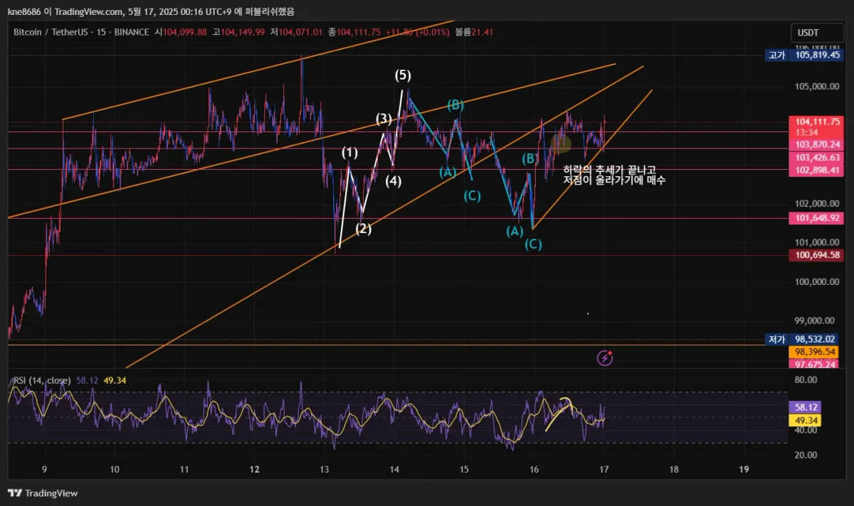 좀 단순하게 매수를 했다. 저점이 오르는 추세로 보였다.