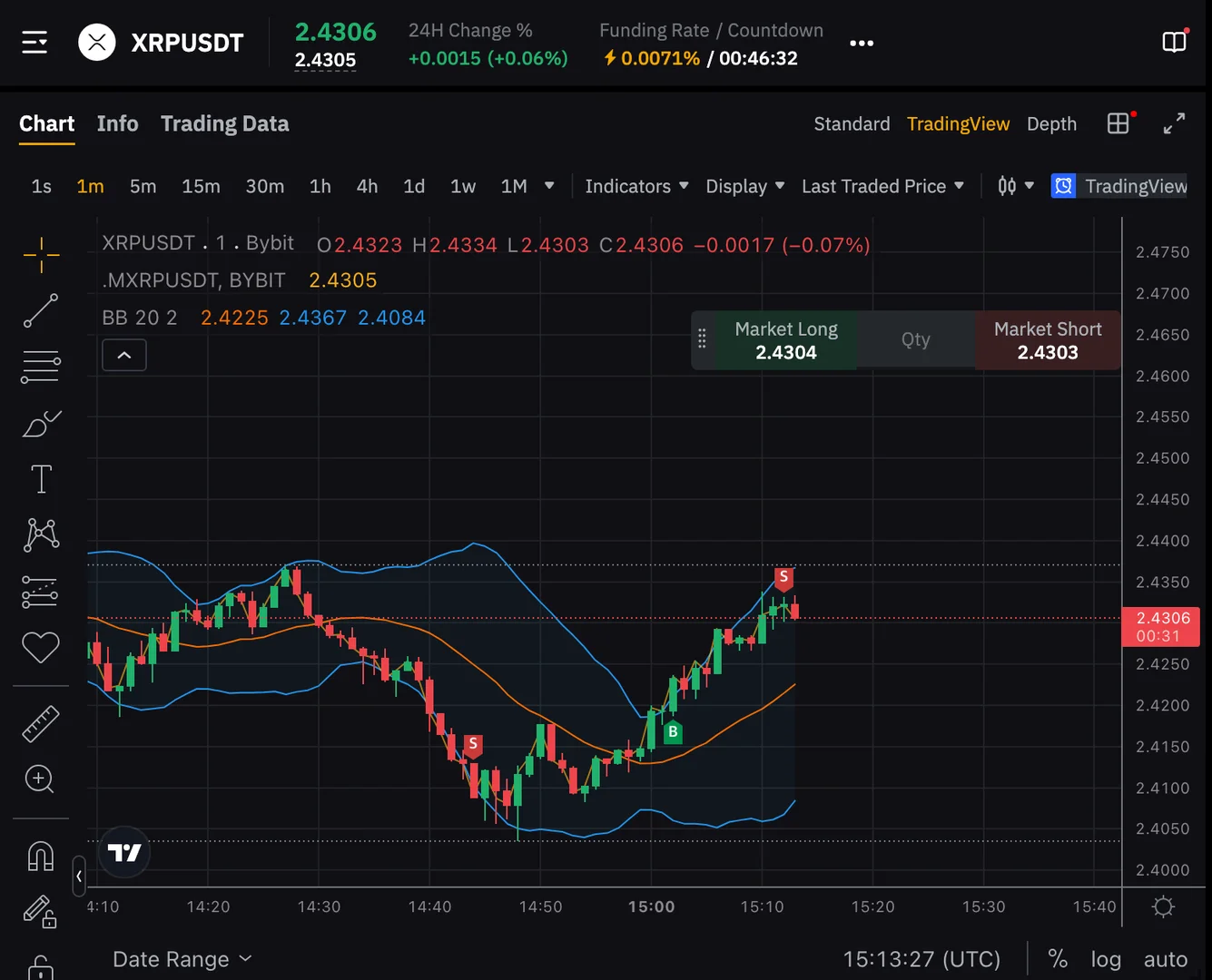리플 60,15분봉 장기 시간프레임으로 상승추세 확인