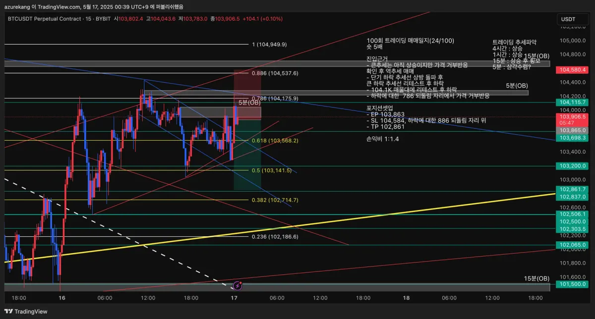 100회 트레이딩 매매일지(24/100) 숏 5배