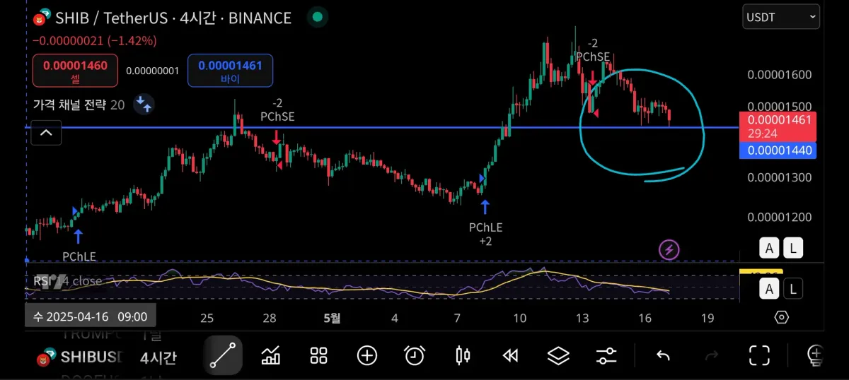 지지선을 그어봤는데 그 지지선을 닿고 올라가는게 몇번 보이는것 같아서 진입을 한 상태이고, 수익이 났다가 손해가 났다가 그러고 있습니다.