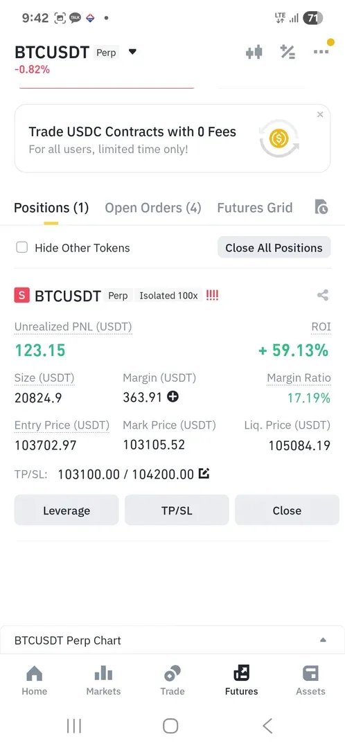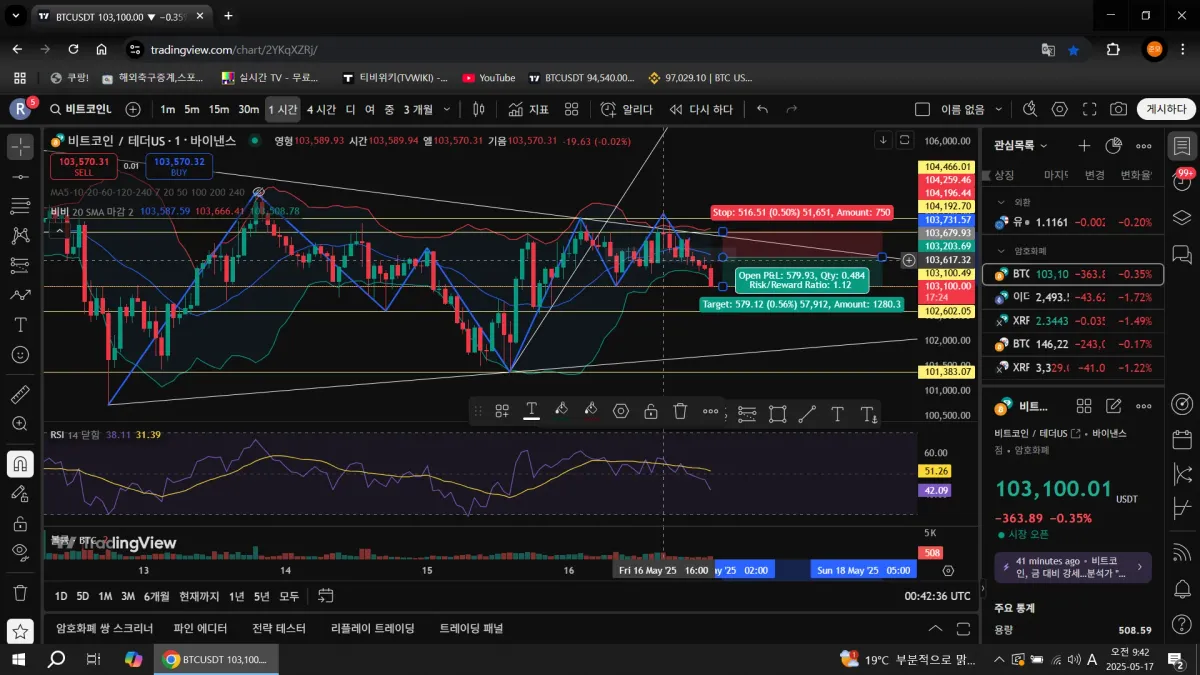 이전 더블탑 넥라인 103.1을 지지구간으로 보고 숏포지션 진입해서 수익달성!!!
