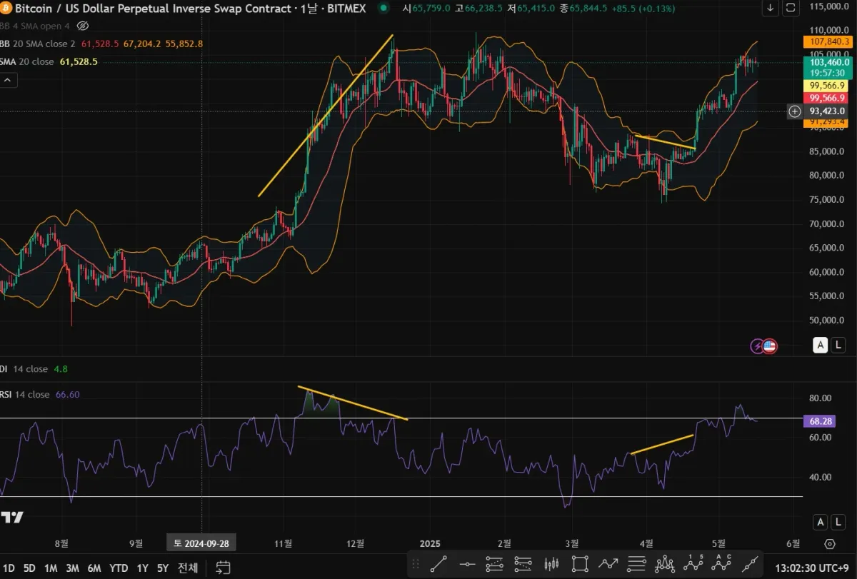 RSI 다이버전스가 생기는 곳을 찾아 봤습니다.