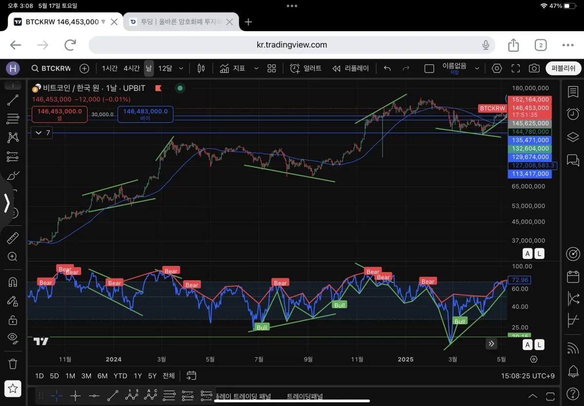 rsi를 자주 사용했지만 이렇게 그려두니 훨씬 판단이 용이해짐을 느끼고 차트의 큰 장벽을 넘은 것 같아요. 정말 감사하네요ㅎㅎ