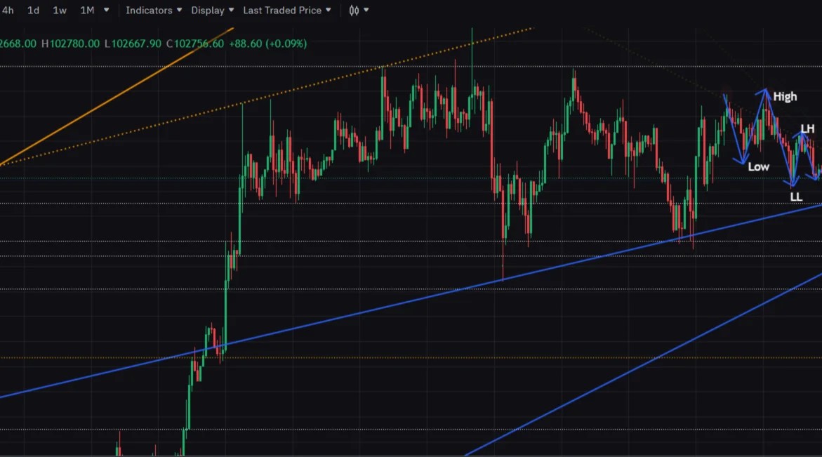 100800 달러에 stop loss 걸어둠 (손익비 고려하지 않고 밑에 잡아놔서 손절될 경우 손실% 높을 수 있음)