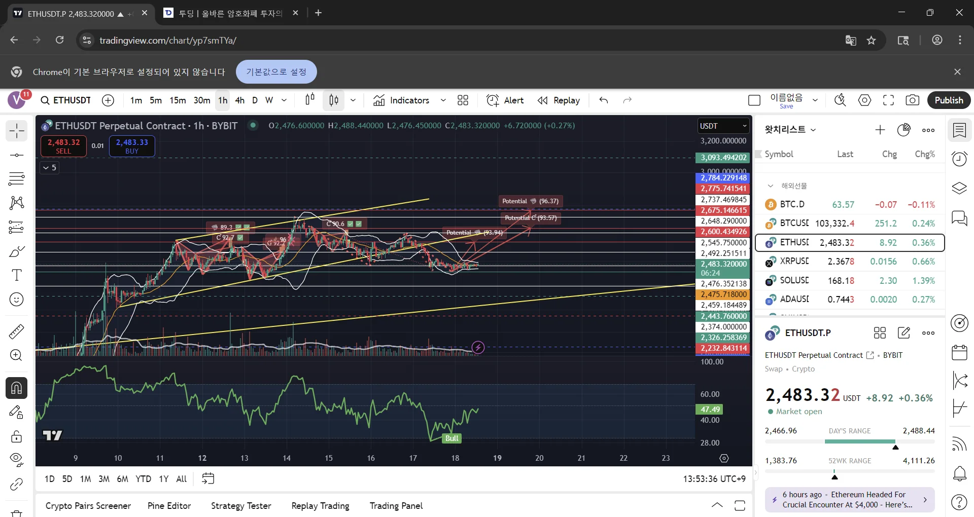 D포인트 도달시 하모닉패틴 적용하여 숏포지션으로 변경 예정임