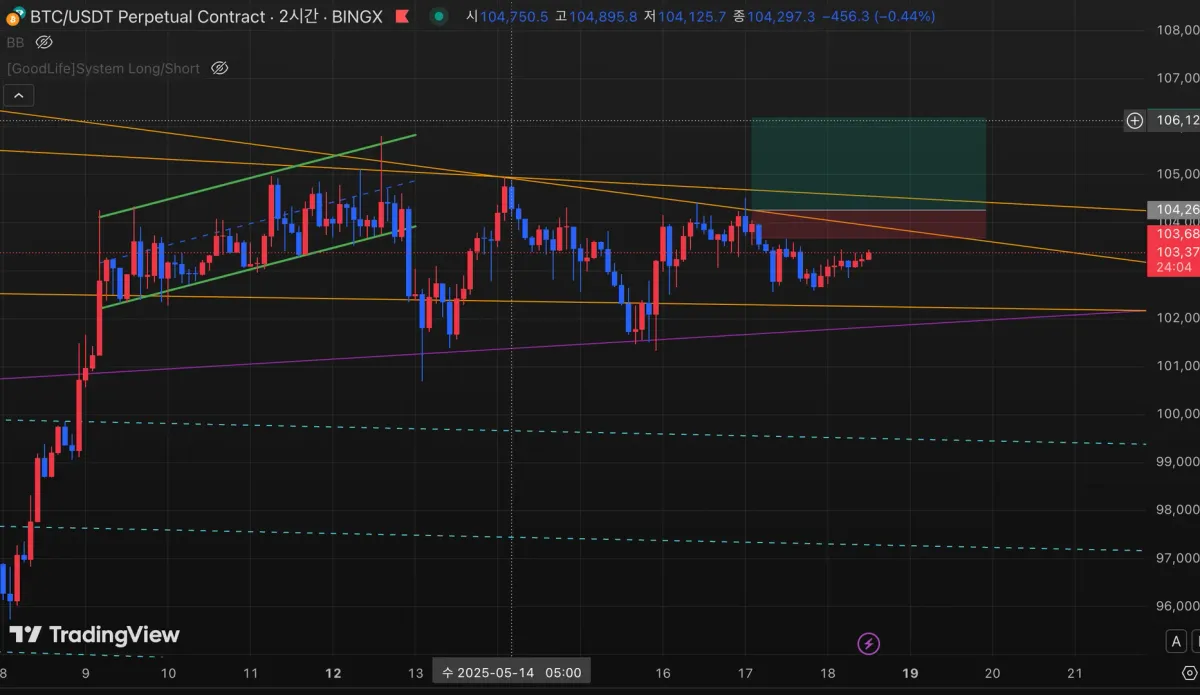 삼각수렴 자리였습니다. 이번 수렴을 깨고 강한 상승을 보여줄 것 같았지만 결과적으로 다시 삼각수렴을 만드는 하단 범위로 하락하는 모습을 보여주었습니다. 이번 매매로 만일 삼각수렴을 돌파시 리테하고 진입을 하는 것이 좋다는 생각이 들었습니다
