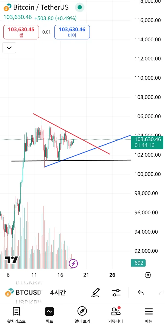 지지선과 추세선 작도를 해보았습니다.
