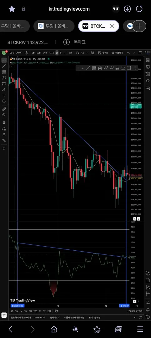 RSI의 기울기가 실제 그래프보다 기울기가 완만하여 저점을 어는정도 예상할 수 있습니다.