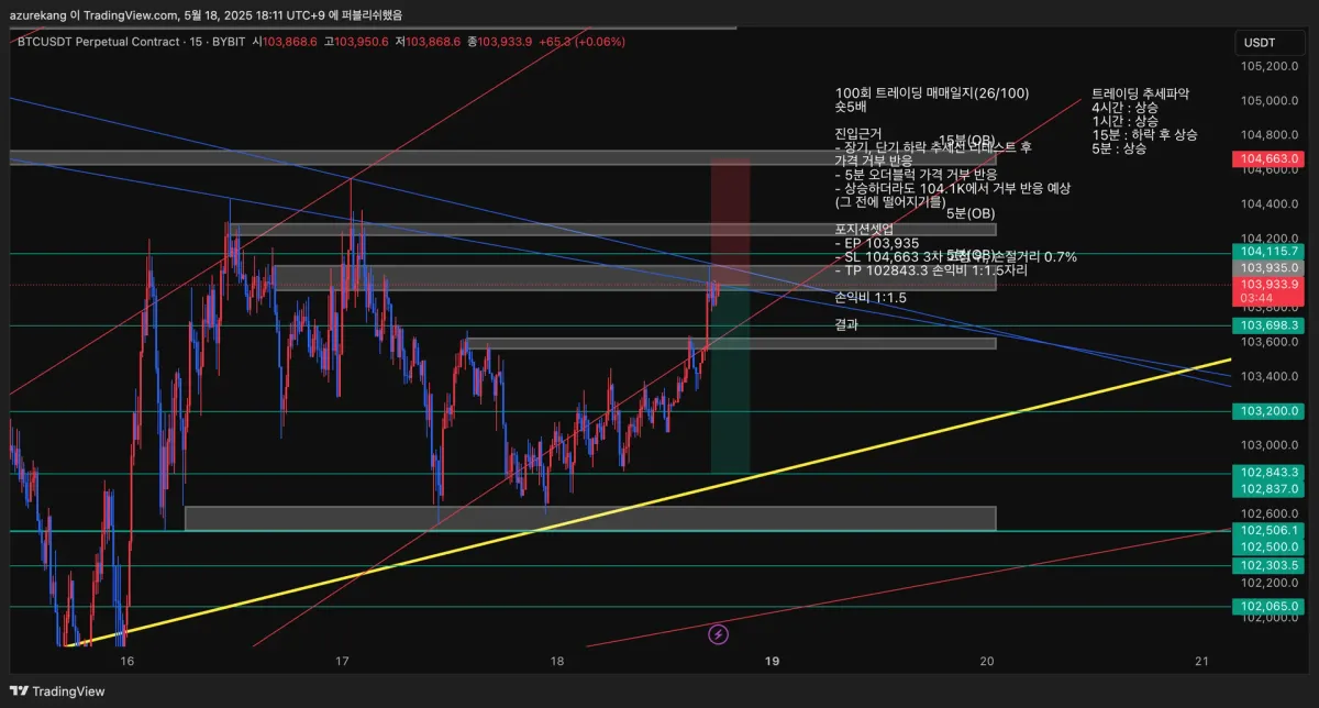 - SL 104,663 3차 고점 위, 손절거리 0.7%