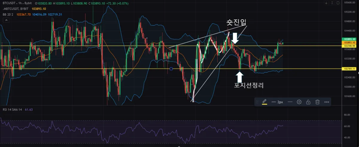 웻지패턴 포착 이탈 후 다음 1시간 봉에서 숏진입