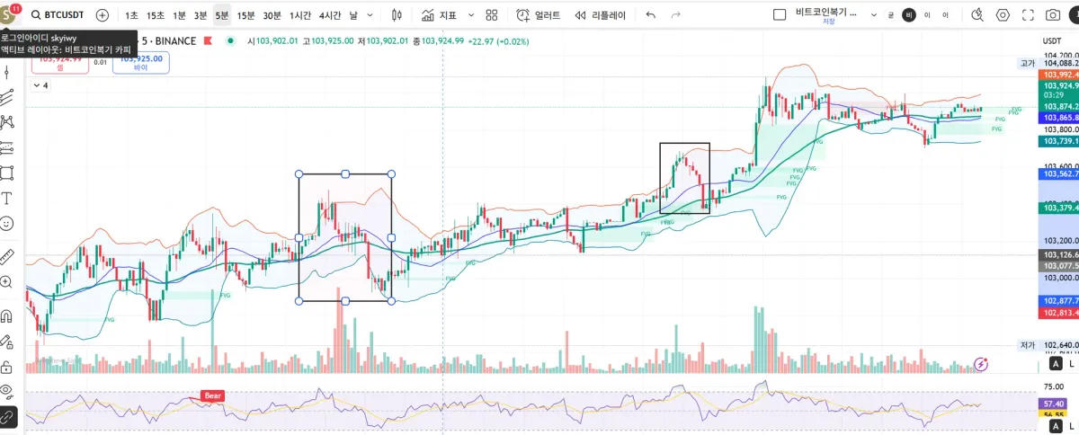 현재 세팅은 볼리저 밴드와 함께 사용 중입니다