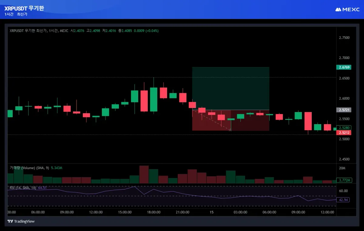 레버리지 5배 활용하여 583 XRP 롱 진입