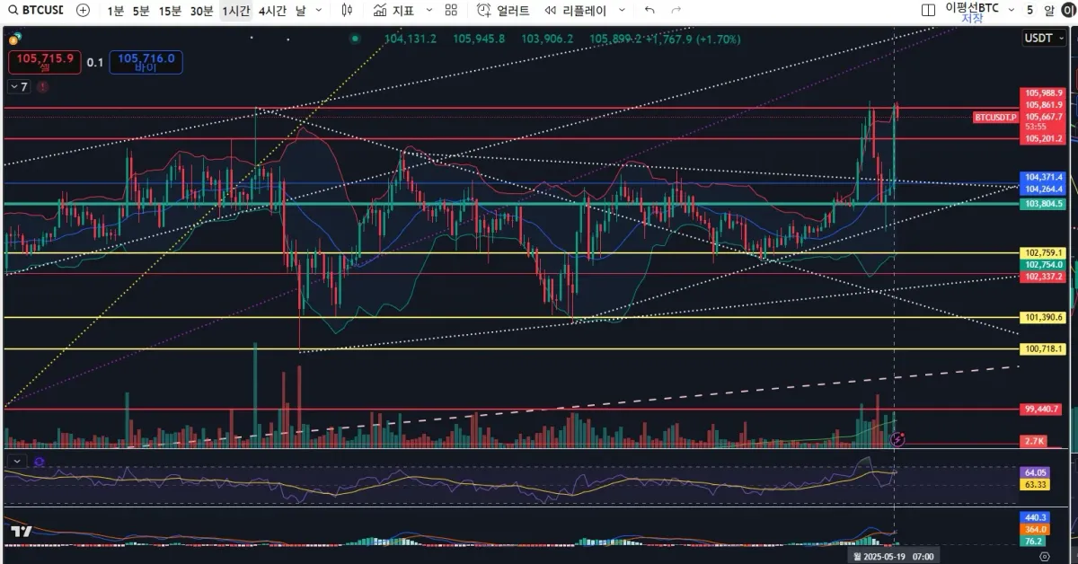 매물대 지지,저항, 추세선 작도 해보았습니다. 추세선에서 지지, 저항 받는 과정을 확인하였고, 추세를 뚫을 경우 강한 상승, 하락을 예상해보았습니다.