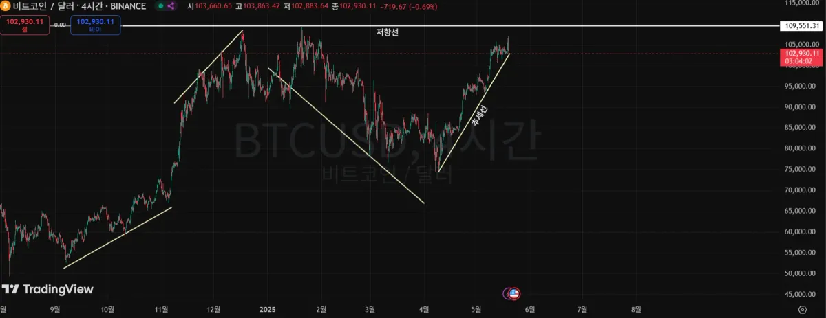 추세선과 저항선에 대해 관해 작도해봤습니다.