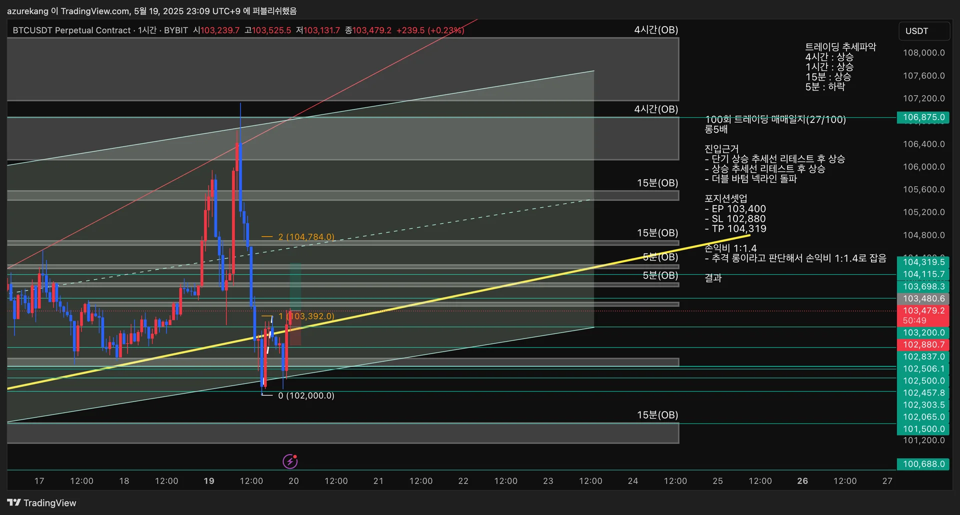 - 추격 롱이라고 판단해서 손익비 1:1.4로 잡음