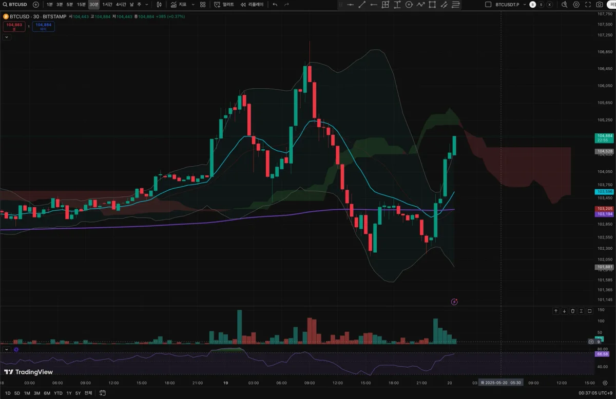 비트코인이 15분봉에서 365일선을 강하게 장대양봉으로 돌파하여 상방으로 들어갔습니다.