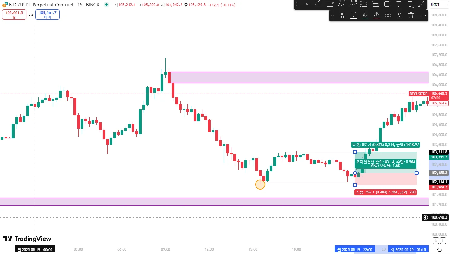 SL: 101,984.2 (이전 저점보다 약간 아래 셋팅)