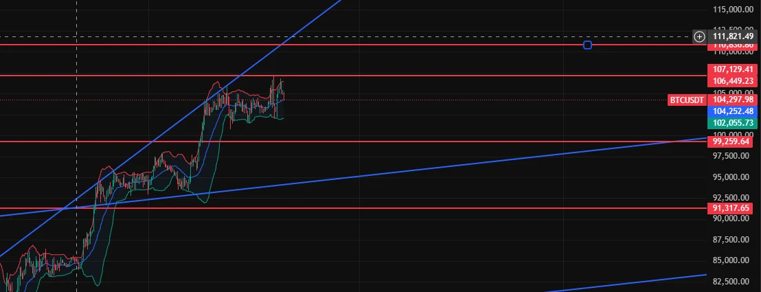 중기상승추세선으로 보아 약 102.6k 정도 까지 조정의 가능성도 있다고 생각하지만 개인적으로 단기 추세선에 매수한 타점은 재매수를 진행하더라도 손절을 보고 나오는것이 리스크관리라고판단.