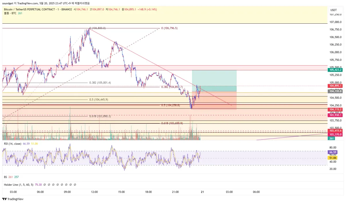 진입:104720.8/익절:105423.2/스탑:104115.2/손익비 1:1.16