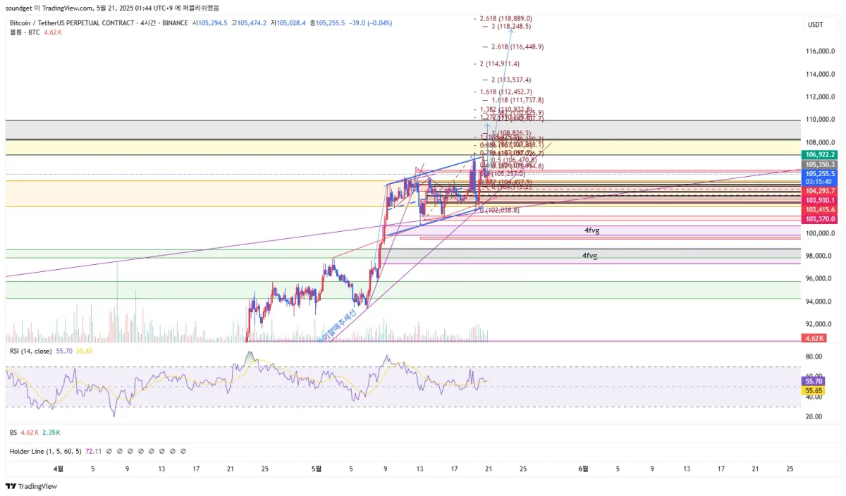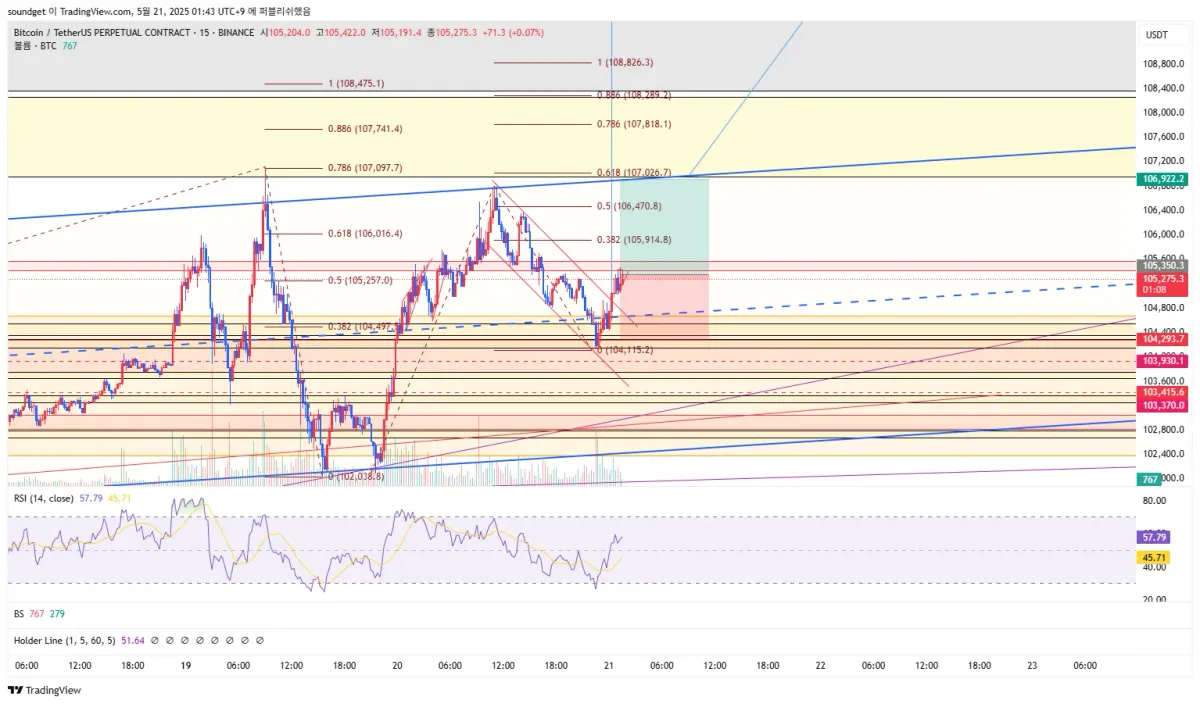 진입:105350.3/익절:106922.2/스탑:104134.27/손익비 1:1.29
