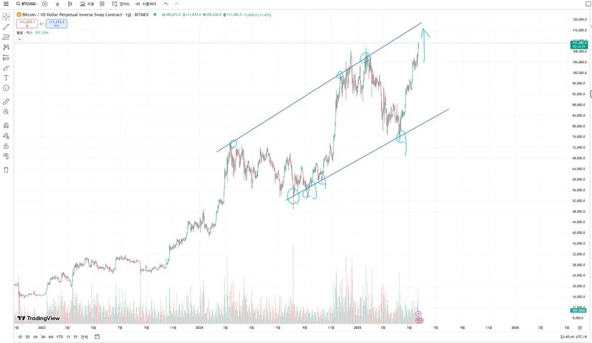 120k를 뚫던가 아니면 저항받고 다시 하락하던가 할 것 같습니다. 아직까진 상승추세가 유효할 것 같습니다.