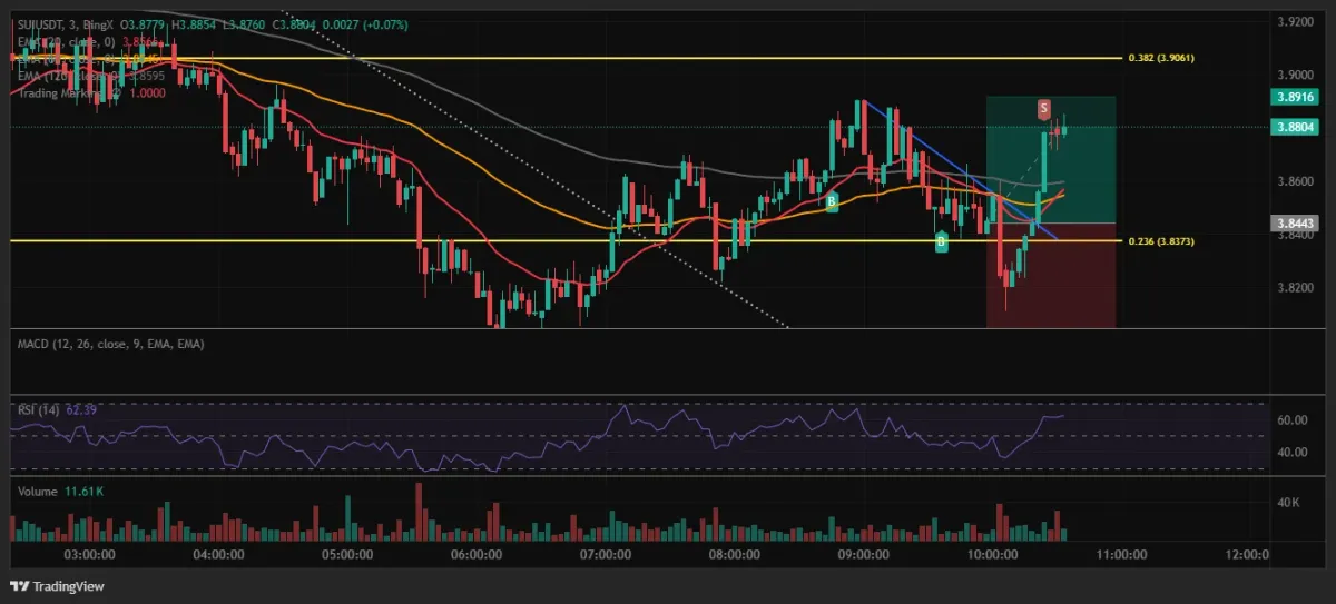 3분봉 상 20이동평균선이 60이동평균선을 골든크로스 하는 시점에서 단타로 매수 진입