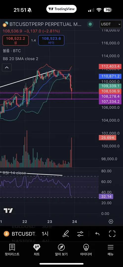 피보나치 돌려서 하락되돌림 예측한 구간까지 떨어지고