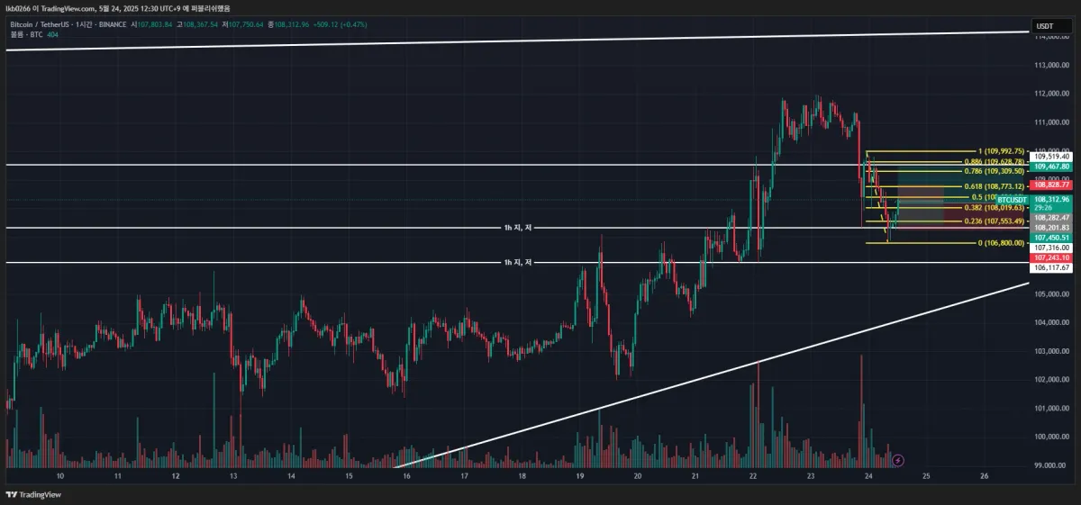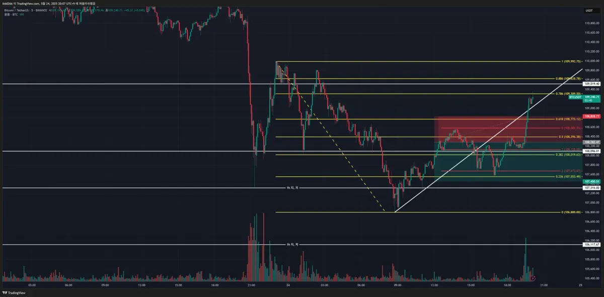 108,828.7(0.618 깨지면, 저항선(?) 밑부분)